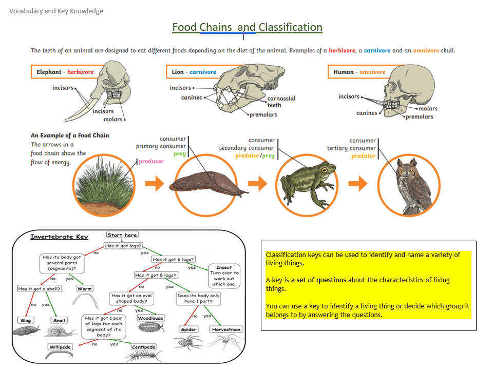 In this unit the children will recognise that living things can be grouped in a variety of ways, explore and use classification keys to help group. Identify and name a variety of living things in their local and wider environment. Make systematic and careful observations. Record findings using keys. Gather, record, classify and present data in a variety of ways to help answer questions. Ask relevant questions and use different types of scientific enquiries to answer them. Use straightforward scientific evidence to answer questions or to support their findings.