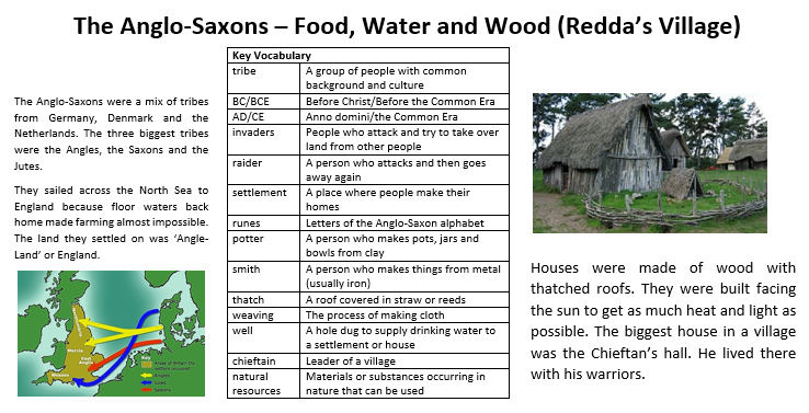The Anglo-Saxon’s use of natural resources and Redda’s village - food, water and wood